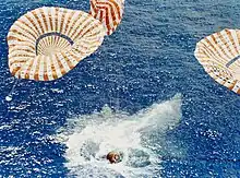Par analogie, le domaine de l'astronautique qualifie également d'amerrissage la prise de contact d'un engin aérospatial avec la surface de l'eau (mer ou océan). Le terme correspondant en anglais est splash-down.