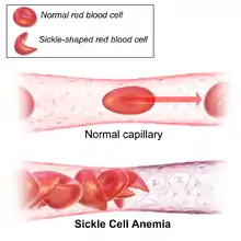 La drépanocytose[alpha 1], également appelée anémie falciforme, hémoglobinose S, et autrefois sicklémie, est une maladie génétique résultant d'une mutation sur un des gènes codant l'hémoglobine. C'est la maladie génétique la plus fréquente dans le monde, avec plus de 300 000 naissances homozygotes concernées chaque année.