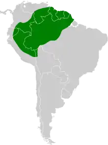 Cet oiseau se rencontre en Bolivie, au Brésil, en Colombie, en Équateur, au Guyana, en Guyane, au Pérou, au Suriname et au Venezuela[1].