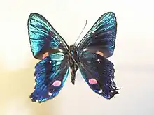 Il se nomme Meliboeus Swordtail en anglais[2]