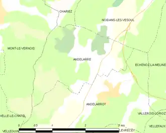 - « Orthodromie entre Andelarre et Vesoul », sur fr.distance.to (consulté le ).