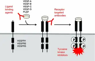 En 2003, un essai clinique démontrant la survie prolongée de patients atteints d'un cancer colorectal métastatique lorsque la chimiothérapie était administrée en association avec des anticorps neutralisants humanisés ciblant le facteur de croissance de l’endothélium vasculaire a abouti à l'approbation de la FDA et a fourni la preuve de concept que les anti- la thérapie angiogénique peut être utilisée avec succès pour traiter le cancer[4]. Par la suite, plusieurs anticorps et inhibiteurs de tyrosine kinase conçus pour cibler la signalisation pro-angiogénique ont été approuvés comme thérapies contre le cancer. Le succès du traitement anti-angiogénique a été jusqu'à présent assez limité, ne procurant qu'un soulagement à court terme de la croissance tumorale avant l'apparition d'une résistance et entraînant généralement des bénéfices modestes en matière de survie. L'efficacité limitée a plusieurs explications, notamment le fait que les tumeurs utilisent des modes alternatifs d'angiogenèse et le développement de mécanismes de résistance. De plus, de nombreuses tumeurs peuvent accéder à l’approvisionnement en sang grâce à la cooptation vasculaire, contournant ainsi le besoin d’angiogenèse tumorale[5].