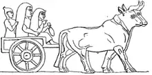 Une autre activité majeure pour laquelle la force de travail des animaux domestiques était mobilisée était le transport, les animaux étant alors utilisés pour tirer des chariots (trait) ou porter des biens (bât). Même si des ânes ont pu être attelés pour tirer des traîneaux (avant l'apparition de la roue vers la fin du IVe millénaire) et des chariots lourds à quatre roues, cette fonction est essentiellement réservée aux bovins, puis par la suite aux chevaux, l'introduction de ces derniers au IIe millénaire permettant la réalisation de chars plus légers et rapides à deux roues[78]. Les ânes sont essentiels pour le bât, avant le développement de l'élevage des chameaux et dromadaires au début du Ier millénaire par les tribus arabes, qui entraîne des changements dans les pratiques commerciales : grâce à sa grande capacité de résistance en environnement chaud et aride, il permet aux hommes de prendre des routes plus longues à travers les déserts. Pour les transports à longue distance, des caravanes sont organisées dès les époques les plus anciennes, et sont particulièrement bien connues pour le commerce des Assyriens en Anatolie centrale au début du IIe millénaire[79]. La monte des équidés reste en revanche peu développée durant la période du Proche-Orient ancien, ne connaissant un essor qu'à partir du Ier millénaire, et surtout pour la chasse et la guerre.