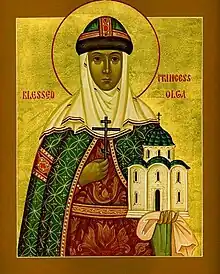La Rus' de Kiev pendant le règne de Sviatoslav Ier. En rouge le territoire russe à son avènement vers 962 ; en orange ses conquêtes de 962 à 972 ; en violet le territoire byzantin ; en bleu les sites probables des États successeurs des Khazars.