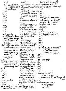 « Année 129 (v. 573) La bataille d'Arfderydd [entre les fils d'Elifer, et Guendoleu fils de Keidau ; durant laquelle bataille Guendoleu tomba ; et Merlin (Merlinus) devint fou.] »