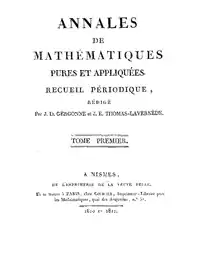 Au début du XIXe siècle, de 1810 à 1832, le mathématicien nîmois Joseph-Diez Gergonne (1771-1859) publie un journal intitulé Annales de mathématiques pures et appliquées, premier grand périodique « généraliste » consacré aux mathématiques (tant de recherches qu'à visée didactique). Il fut aidé dans les deux premières années par un autre mathématicien de la même ville, Thomas-Lavernède. Puis Gergonne gère seul l'édition de son périodique, y compris après sa nomination à la faculté de Montpellier en 1816.