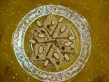 Piler au mortier des amandes et du sucre blanc. Ajouter de la girofle, de l’eau de rose au nard indien, un peu de camphre. Former les gâteaux et les tremper dans une solution de fécule. Sécher au soleil. (Laurent no 428, Guillaumond no 305). Les qâhiriyyah se servent arrosés de sirop de rose ou de julep ou simplement de miel filtré[10].