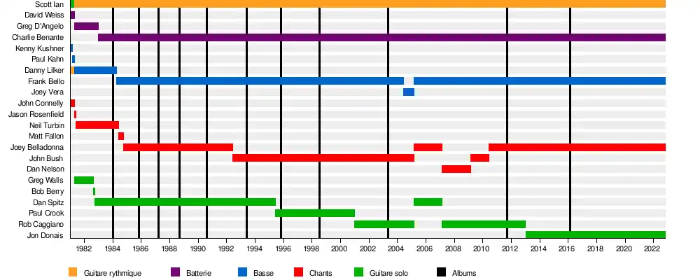 - Joey Belladonna – chant (1984–1992, 2005–2007, depuis 2010)
