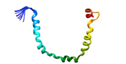 Elle est composée d'une chaîne peptidique de 79 acides aminés, couplée à une chaine glucidique, formant une structure en 6 hélices alpha[3]. Son expression est essentiellement intestinale et hépatique.