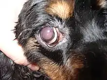 - Larmoiement congénital ou acquis ; par hypersécrétion (exemple, la sécheresse oculaire) ou hypo-excrétion des larmes (fistule lacrymale) ; permanent (sténose lacrymale épiphora) ou intermittent (souvent lié à des infections de la sphère ORL) selon le type de complications infectieuses (dacryoadénite, dacryocystite, canaliculites, conjonctivites lacrymales…), l'origine tumorale (lymphome, carcinome…), mécanique (dacryolithiase, migration de bouchons…) ou traumatique