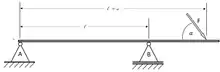 La poutrelle non chargée illustrée est soutenue par un appui fixe A à gauche et un appui mobile B à droite. Une force F agit sur le côté droit. Puisque A est un appui fixe, l'appui A peut absorber à la fois les forces horizontales et verticales. L'appui B, appui mobile, ne peut absorber que les forces verticales.