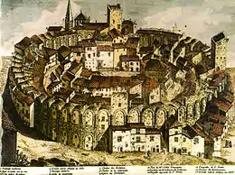 À la fin du VIe siècle, les arènes s'adaptent à la nouvelle réalité du temps : le retour de l'insécurité. Les voilà donc transformées en bastide, sorte de forteresse urbaine qui au fil du temps se dote de quatre tours de défense[3] et dans laquelle s'intègrent plus de deux cents habitations et deux chapelles.