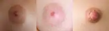 De taille variable selon les individus, l'aréole atteint en général un diamètre de 2 à 3 cm mais peut recouvrir entièrement la surface du sein ou être à peine visible[3]. Sa surface pigmentée, sans délimitation nette, peut présenter une variété de couleurs du brun foncé au rose clair[4]. La pigmentation de l’aréole se renforce pendant la grossesse[5].