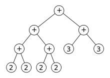 Le parent est mis après ses enfants. Cette logique est fréquemment utilisée en informatique (pile, Forth, machine virtuelle Java, Postscript et autres) : 2 3 +