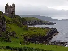 Les XIVe et XVe siècles virent la venue de la maison-tour. Cette tour habitée fut adjointe à des châteaux plus anciens, tels le château de Duart du Clan Maclean ou le château de Sween. Elle constitua aussi nombre de châteaux du XVe siècle tels le château de Carrick du Clan Lamont, le château de Craignish des Campbell, le château de Moy des Maclean, le château de Dunollie des MacDougall, et le château de Breachacha sur l'île de Coll[A 3]. À Breachacha, la branche des Maclean de Duart décida d'envahir leurs cousins de Coll. Les Maclean de Coll gagnèrent la bataille, coupèrent les têtes de leurs cousins et les jetèrent dans un ruisseau connu le « ruisseau des têtes »[23].