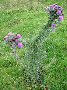 L'Argyll and Bute contient une flore riche en espèces, comptant aussi bien un grand nombre d'algues le long des côtes que des plantes de l'étage montagnard. Par exemple, l'île de Colonsay abrite à elle seule plus de la moitié des fleurs sauvages britanniques[E 2]. Ces espèces sauvages sont enrichies par les plantes exotiques que les habitants ont choisi de cultiver[27], tels le buisson australien Tasmannia lanceolata[H 2], l'arbuste sud-américain Embothrium coccineum[H 3], le Fascicularia bicolor chilien[H 4], et des bambous[H 5]. Ces plantes s'acclimatent bien : le plus grand arbre de Grande-Bretagne est un sapin de Vancouver se trouvant en Argyll and Bute[H 6], introduit vers 1875 et mesurant 64,28 m en 2010[28] tandis que la collection nationale de Nothofagus (originaires de l'hémisphère sud) se trouve dans le jardin de Crarae[29],[H 7]. Des plantes exotiques tels que le Lychnis ont aussi été introduites par le professeur John William Heslop-Harrison, qui publia plusieurs articles dans la première moitié du XXe siècle où il décrivait ses découvertes de plantes exotiques dans les Hébrides, alors qu'il les plantait lui-même[E 3]. Bien que la région s'inscrive dans le cadre plus large de la flore de l'ouest des Highlands[27], elle compte des plantes particulièrement rares à l'échelle de l'Écosse : les fougères indigènes Cystopteris montana et Woodsia alpina[30], la Scheuchzeria palustris[31] (seule espèce du genre Scheuchzeria, lui-même le seul de sa famille), ou les mousses Plagiomnium medium[32] et Tortula marginata[33].