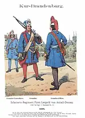 Vers 1643-1644, l'armée en gestation comptait seulement 5 500 hommes de troupe, dont 500 mousquetaires dans la garde personnelle de Frédéric[1]. Johann von Norprath, l'homme de confiance de l'Électeur, recruta des forces dans le duché de Clèves et constitua une armée de 3 000 soldats hollandais et allemands en Rhénanie en 1646. Les garnisons s'accrurent aussi lentement au Brandebourg et dans le duché de Prusse[2].