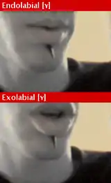 Habituellement, les voyelles arrondies postérieures et centrales sont endolabiales, alors que les voyelles antérieures arrondies sont exolabiales (Catford 1982, p. 172).