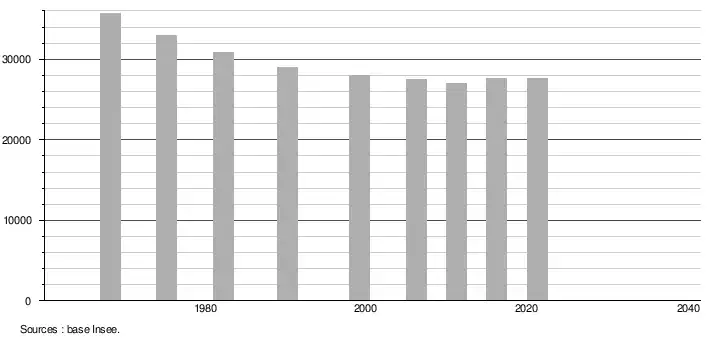 - Population municipale légale en vigueur au 1er janvier 2024, millésimée 2021, définie dans les limites territoriales en vigueur au 1er janvier 2023, date de référence statistique : 1er janvier 2021.