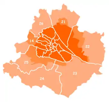 Les arrondissements 1 à 9 et le 20e sont considérés comme arrondissements intérieurs (également qualifiés de situés à l'intérieur du Gürtel, quoique cela ne soit pas vrai pour le 2e, le 20e et une partie du 3e), tous les autres sont qualifiés d’arrondissements extérieurs.