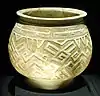 La Préhistoire de la Chine a laissé de nombreuses formes que nous qualifions d'artistiques[6] dans les cultures des chasseurs-cueilleurs du Paléolithique, puis au cours de la néolithisation et du Néolithique, en particulier la céramique et le jade, une pierre polie typiquement chinoise. Par ailleurs les plus anciennes céramiques actuellement découvertes dans le monde ont été découvertes dans la grotte de Yuchanyan, habitée par des chasseurs-cueilleurs. Quant aux fouilles archéologiques depuis les années 1920, longtemps concentrées dans le bassin du fleuve Jaune, considéré comme le berceau de l'ethnie Han, elles se sont étendues progressivement à d'autres régions surtout depuis les années 1980. Elles ont révélé, à côté de céramiques et de jades aux formes variées, une très grande diversité d'architectures préhistoriques[7] ainsi que des pétroglyphes gravés ou peints[8], dont certains de la période paléolithique, sur l'ensemble des territoires qui sont devenus la Chine actuelle. La céramique joue aussi sur une grande variété de types[N 7] présentant certaines similitudes pour certains sur des millénaires, mais souvent très différents au cours du temps et des lieux. Les potiers et les céramistes, plus généralement, ont fait preuve d'une très belle créativité dans ces très nombreuses cultures néolithiques, qu'il s'agisse des formes mais aussi des traitements de la surface, d'un point de vue fonctionnel ou ornemental. Enfin les peintures en ont recouvert une bonne partie, tandis que d'autres ont évolué sans cet apport supplémentaire.