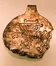 ![]() | ![]() | Les rhytons en argent de l'époque des Achéménides associent des éléments orientaux de la Grèce antique et d'autres de l'art d'Urartu. Cet aspect a permis aux scientifiques de parler de l'influence de l'art d'Urartu sur celui de la Perse[19]. |
