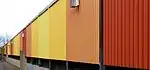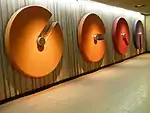 | Villa-Maria | Orange | Léonard, André | Cercles | 1981 | Béton polymère, acier inoxydable | Deux murales constituées de cercles en béton polymère colorée évoquant des cadrans en rotation. | ![]() |