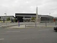 | Raby, Marcel | Grille sculpturale | 1976 | Acier peint | L'œuvre est une intégration à l'architecture et camoufle une bouche de ventilation. Elle est composée de plaques verticales et de tubes aux couleurs olympiques. | ![]() | ||