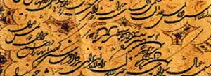 Les enluminures, et spécialement dans le Coran et des travaux tels que le Shâh Nâmâ, le Divân de Hafez, le Golestan, le Boustan et autres sont reconnues comme des œuvres d'une très grande valeur pour leur seule calligraphie. De très nombreuses œuvres calligraphiques sont préservées dans des musées et des collections privées dans le monde entier, comme au musée de l'Ermitage de Saint-Pétersbourg et à la Galerie d'art Freer de Washington entre autres.