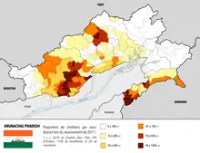 La population comportait 337 000 habitants en 1961 et, selon le recensement de 2011, 1 383 727 habitants[8]. Ils se répartissent en trois groupes ethniques principaux : Apatani, Monba, Adi et Nishi.