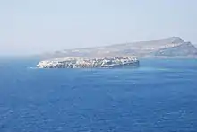 - (de) Cet article est partiellement ou en totalité issu de l’article de Wikipédia en allemand intitulé « Aspronisi » (voir la liste des auteurs).