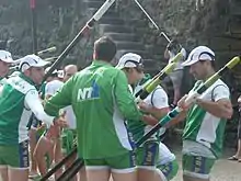 La traînière s'appelle Ama Guadalupekoa (Notre-Dame de Guadalupe) et l'entraineur est Mikel Orbañanos.