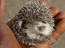 Le Hérisson à ventre blanc[1] (Atelerix albiventris) est une espèce de mammifère insectivore de la famille des Erinaceidés. Cette très petite espèce de hérissons vit dans les déserts du sud de l'Afrique, du Sénégal au Soudan et à la Zambie. Les anglophones le nomment African pygmy hedgehog (hérisson pygmée d'Afrique) à cause de sa taille réduite ou encore four-toed hedgehog (hérisson à quatre doigts) en raison de cette particularité anatomique.