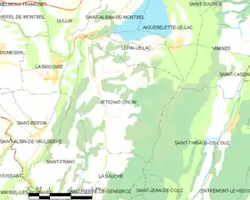 La commune comprend également de nombreux hameaux et son territoire s'étend au nord jusqu'à quelques mètres de la rive gauche du Tier (ou Thiez), cours d'eau qui sert de déversoir au lac d'Aiguebelette, au niveau du Gué des planches, lieu-dit partagé les communes de Saint-Alban-de-Montbel et de Lépin-le-Lac.