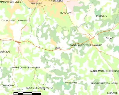 En 2015, année précédant la création de la commune nouvelle de Boulazac Isle Manoire, Atur était limitrophe de quatre autres communes.