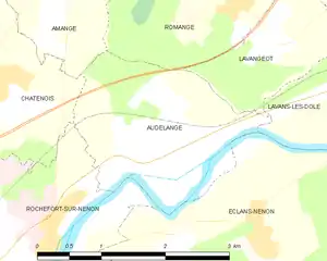 - « Orthodromie entre Audelange et Dole », sur fr.distance.to (consulté le ).