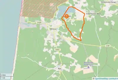 Par ailleurs la commune fait partie de l'aire d'attraction de Mimizan, dont elle est une commune de la couronne[Note 2]. Cette aire, qui regroupe 5 communes, est catégorisée dans les aires de moins de 50 000 habitants[12],[13].