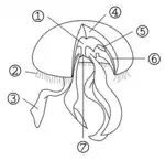 Dessin par la NASA. Des larves d'aurélies ont été utilisées pour des expériences sur la gravitation en 1994.