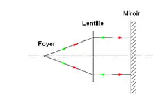Dans le cas d'une lentille convergente, celle-ci est placée entre le miroir et la source de lumière. On obtient donc, par réflexion, une image de la source de lumière du côté de celle-ci. On déplace alors la lentille jusqu'à ce que la source de lumière coïncide avec sa propre image réfléchie. La distance entre la lentille et la source de lumière est alors la distance focale de la lentille.