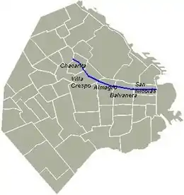 du métro de Buenos Aires l'accompagne sous une grande partie de son parcours (Stations "Leandro N. Alem", "Florida", "Carlos Pellegrini", "Uruguay", "Callao", "Pasteur", "Pueyrredón", "Carlos Gardel", "Medrano", "Ángel Gallardo", "Malabia", "Dorrego", et "Federico Lacroze").