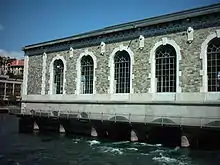 L'intérieur du bâtiment de style Beaux-Arts est constitué d'immenses espaces qu'aucun mur ne vient couper alors que le toit est soutenu par une charpente métallique. Les façades sont en béton et pierre et seule celle qui fait face au lac est ornée de statues représentant Neptune, Cérès et Mercure. Par ailleurs, pour éviter des surpressions, une vanne de décharge est installée près de la grande aile en créant le premier jet d'eau de Genève.