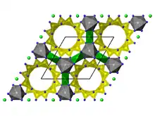 Le béryl est une espèce minérale du groupe des silicates, sous-groupe des cyclosilicates, de formule Be3Al2Si6O18, avec des traces de Fe, Mn, Mg, Ca, Cr, Na, Li, K, Rb, Cs, O, H et OH. Certains cristaux peuvent atteindre 18 m et peser 180 t[4].