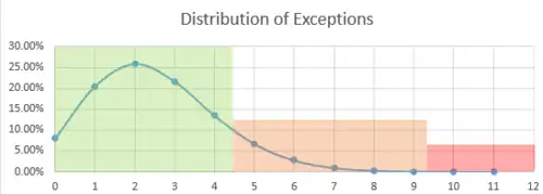 | Zone | Nombre d'exceptions | Probabilité | Cumul |