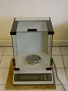 Lavoisier perfectionne la balance et les principes de pesage. Il en généralise l'usage dans les laboratoires, après avoir conçu une balance sensible au milligramme[2].