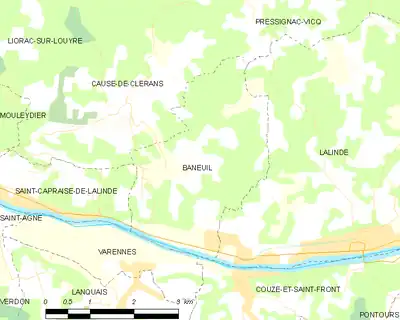Baneuil est limitrophe de six autres communes, dont Couze-et-Saint-Front au sud-est, sur moins de 400 mètres.
