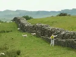 Les trois kilomètres du mur d’Hadrien situés de part et d’autre du fort de Birdoswald sont les seules sections connues où le mur de pierre a été bâti sur une ligne différente du mur originel en terre, permettant la comparaison. Le mur de pierre a été bâti à environ 50 mètres au nord, s’alignant sur le mur nord du fort plutôt que sur ses portes est et ouest ; les raisons de ce changement ne sont pas claires, possiblement le résultat d’un changement des besoins de signalisation[3].