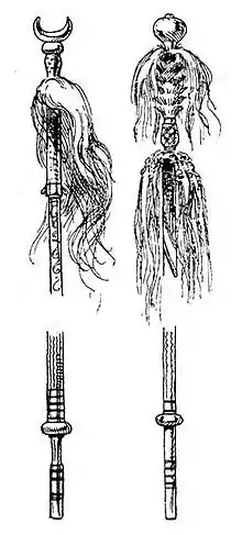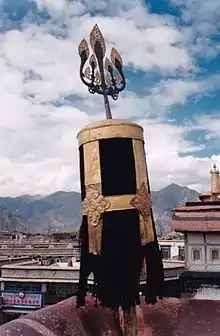 Chez les Tibétains, le même symbole se nomme gyaltsen (tibétain : རྒྱལ་མཚན, Wylie : rgyal-msthan, THL : gyaltsen, littéralement bannière) et est également connu sous le terme sanskrit de dhvaja (sanskrit : ध्वज). Il a été intégré aux religions locales: chamanisme bön et bouddhisme.