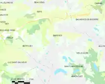 La commune est délimitée au nord-ouest par le Bastan s'écoulant d'est en ouest dans une vallée assez étroite dans laquelle se situe le village principal (à l'altitude de 1 250 m) et ses principaux lieux-dits habités. Le Bastan sépare aussi la commune de celle de Sers (à droite du gave), dont des parties résidentielles touchent le village de Barèges le long de la rivière.