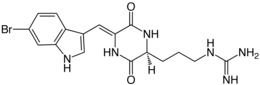 Nom UICPA 2-[3-[(5E)-5-[(6-bromo-1H-indol-3-yl)méthylidène]-3,6-dioxopipérazin-2-yl]propyl]guanidine