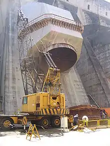 Toutes les connaissances en ingénierie qui existaient à l'époque ont été utilisées dans la construction. Une partie de la structure était italienne et américaine. Pour la production d'électricité, la technologie allemande et suisse a été utilisée. Il a fallu installer deux centrales à béton à l'intérieur de l'usine, en plus de la plus grande fabrique de glace du monde ; en effet le béton devait être mélangé au gel, car le refroidissement empêche la formation de fissures. Le béton a été produit 24 heures sur 24 pour réaliser les travaux[4].